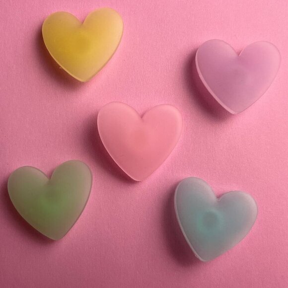 Spread the love with this set of 5 multi-color heart-themed shoe charms! Featuring vibrant and cheerful designs pink, green, purple, blue, yellows, these charms are perfect for adding a sweet and colorful touch to your Crocs or clogs.