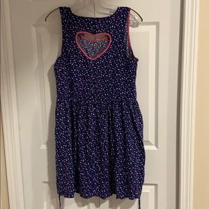This dress features a cute white and pink triangle print with a heart cut-out on the upper back. Also this dress has POCKETS.