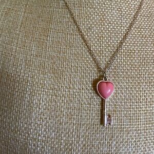 Elegant heart key pendant necklace featuring with “Sisters” charm. Perfect for adding a touch of romance to any outfit. Looks like Tiffany’s.