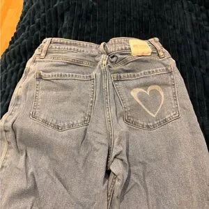Stylish jeans with heart patterns. Perfect for casual wear.