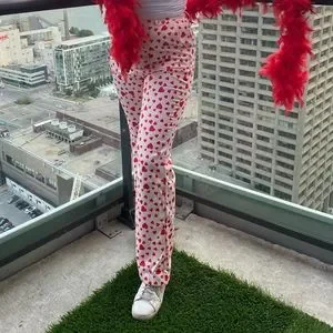 Shein Pink Pants with red hearts all over | only worn once for a concert