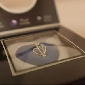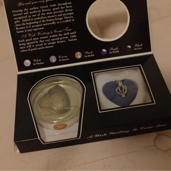 Heart pendant necklace with a pearl kit. Includes a blue heart-shaped pendant.