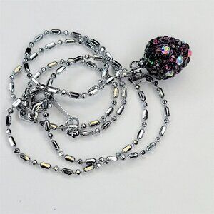 Heart Style Purple and Green Crystal Rhinestones Pendant Necklace