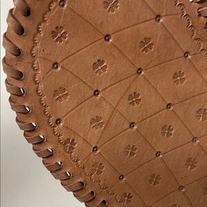 Heart shaped, tooled leather, boho crossbody bag. Beautiful roses on front. Bag is in good condition, see photos.