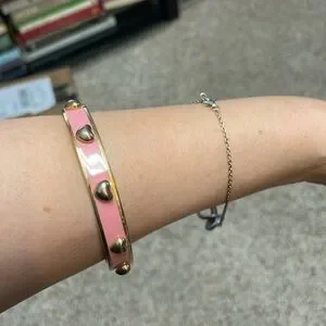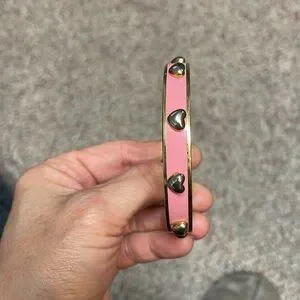 Sooo cute Pink enamel over gold hardware No markings Heavier good quality - I think it’s Betsy Johnson