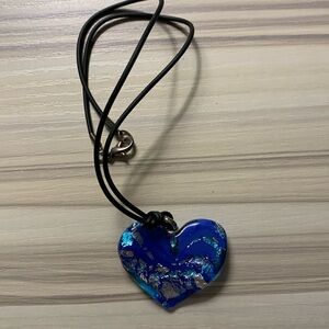 Heart of Gold with Metallic Leaf - Blue with Black Rubber Chain NWOT