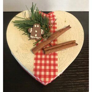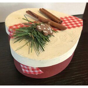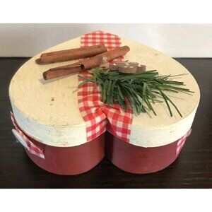 Heart-Shaped Decorative Cardboard Box With Cinnamon & Pine Holiday Design 5 X 2"