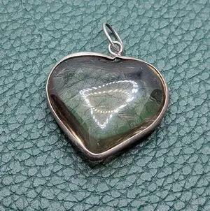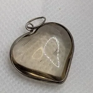 Add some natural magic to your jewelry collection with this stunning heart-shaped pendant. Featuring a translucent smoky-green gemstone with delicate internal rutilations, this piece captures the light beautifully. The stone is securely set in a classic silver-tone bezel, making it a versatile staple for both everyday wear and special occasions