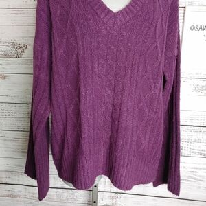 Super soft and stretchy v-neck cable knit sweater with oversized sleeves. New with tag.