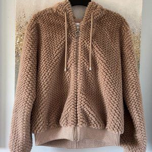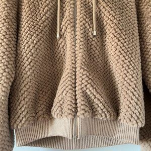Size: Small. Color: Putty. Shell: 100% polyester. Lining: 95% polyester; 5% spandex. Front zipper. Drawstring hood. Super-soft exterior fabric. Perfect for fall🍁,