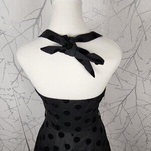 Hearts & Roses Black Velvet Polkadot Fit & Flare Halter Dress