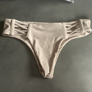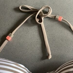 In good second hand condition. Bottom is a large top have no tag but fit large to XL. Half neck with toe at the back. Cute beads details on the straps. Bottom is high waisted and cheeky. Measure for top: bust 16'' back is adjustable. Measure for bottom: waist 14,5'' rise 9,5''.