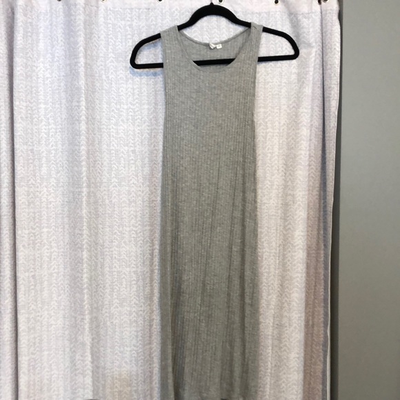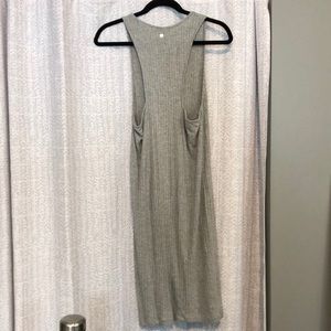 Dress is fitted but super comfortable and stretchy. Hits just below the knee. Works perfectly as a casual beach cover up, or can easily be dressed up. The sides are low so it looks best brakes, with a bikini top, or bralette.