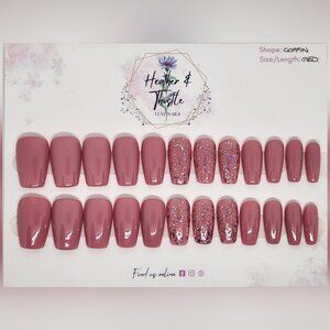 Heather & Thistle Luxe Press-On Nails - Nude Sparkles - Medium Coffin