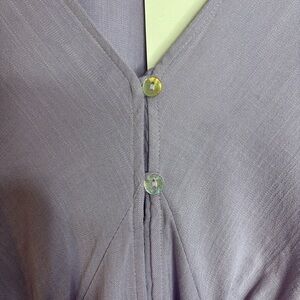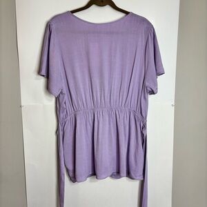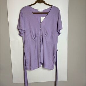 Heatherly Women’s 2X Purple Button-Down Top Tie Back Short Flutter Sleeves Mauve