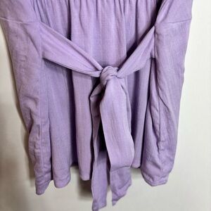 Stylish purple button-down top with short sleeves and tie front. Perfect for casual outings.