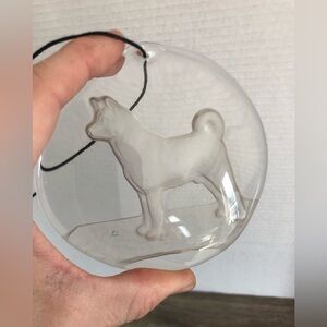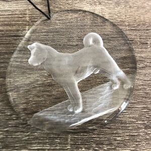 Elegant clear suncatcher featuring a dog design. Perfect for decoration. Could also be used as an ornament on a tree.