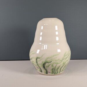 Heavy pottery hand painted lamp base, wavy seaweed nautical home decor