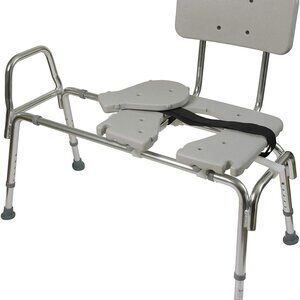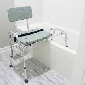 • EASY TO USE: Simply position one end of the transfer chair inside the shower and the other side outside. With the help of a caregiver, have the person carefully sit on the seat and gently slide them over the lip of the tub and into the shower