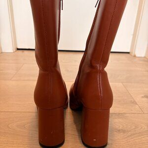 Stunning brown boots, platformed with a zipper function. Slight scuffing on the heels.