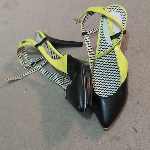 Black and neon green straps with checkerd insole size 10 heels