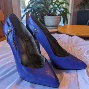 Beautiful mauve/purple size 9 stilettos. with a gold chain wrapped around the heel, like new.