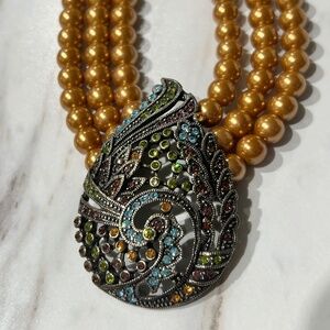 Heidi Daus Faux Pearl Paisley Pendant Statement Necklace