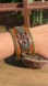 Beautiful vintage cuff bracelet featuring a vibrant orange design with multicoloured crystals.