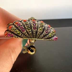 Crafted with care, this brooch is a testament to fine fashion jewelry, showcasing an intricate pavé setting that secures the dazzling crystals. It's a charming addition to any jewelry collection, especially for those who appreciate unique, handcrafted pieces. This item is signed on the back “Heidi Daus” ensuring its authenticity and quality craftsmanship.