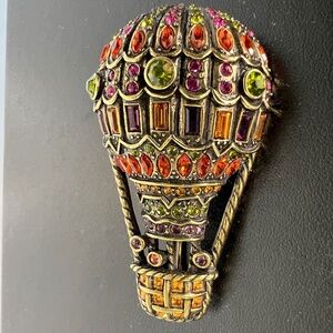 Heidi Daus Full of Hot Air Balloon Signed Brooch Pin 2.25” HSN Swarovski Crystal
