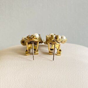 Brand New in Box with Warranty card & romance card, Heidi Daus Pierced Warm Embrace Art Deco Omega back Earrings. Meticulously handset aroura borealis crystals & faux pearls on elongated graceful curves brass with bronze tone plating that shimmer at every turn.