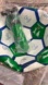 Heineken-branded soccer ball with the UEFA Women's Champions League logo; Heineken's sponsorship of the league. The ball is white with green and blue accents and features the Heineken and Champions League logos. A green hand pump is included in the packaging Heineken inflatable soccer ball.