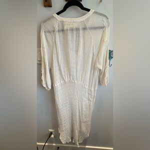 Elegant ivory sheer tunic top with button details. Perfect for layering.
