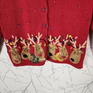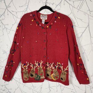 Heirloomn Collectibles Ramie Cotton Knit Festive Reindeer Cardigan