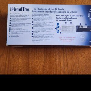 The Helen of Troy Hot Air Brush comes with a soft-grip textured blue handle. It dries and styles your hair in one easy step. According to the manufacturer, it has been designed and tested for performance, durability and handling ease. It has never been used and is still in the original box. Included is an 8 foot professional swivel cord and an ALCI safety cord.