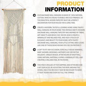 This vintage-meets-modern macrame wall hanging tapestry was inspired by tribal art objects and boho chic decor, which create a minimalist and relaxed feel and add a touch of elegance and beauty to your home. With Taufey macrame wall hanging,