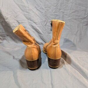 There is no size marking, but they seem to fit as a women 8.5. Please refer to measurements. There are some marks on the leather as shown