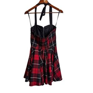 Hell Bunny Red Black Tartan Plaid Halter Pin Up Goth Dress Size Small
