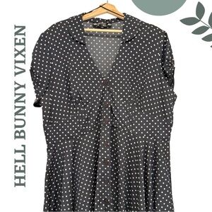 Hell Bunny Vixen Polka Dot Midi Dress Shirt Sleeve Dark Grey Black Size 18 (4x)