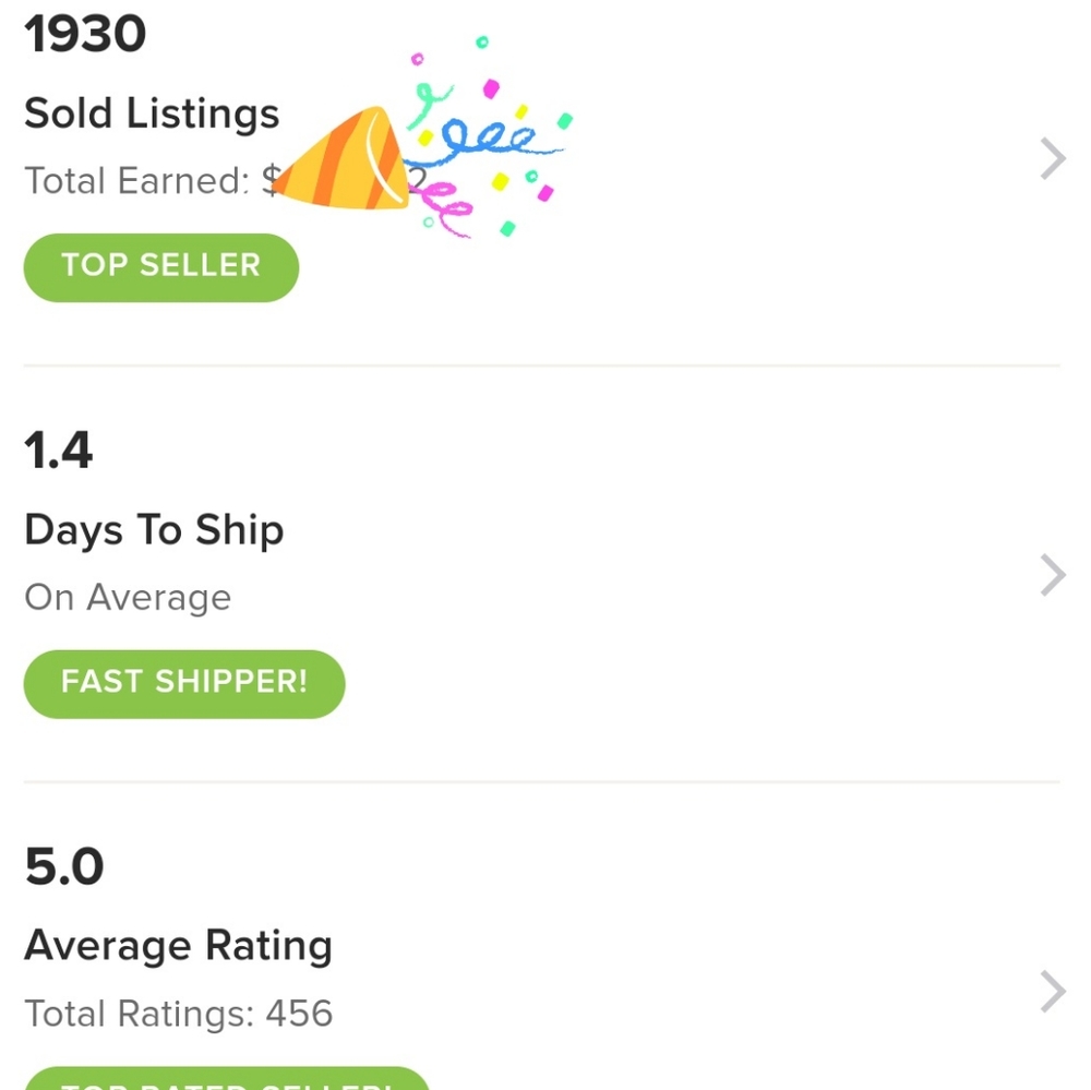 Fast shipper, Top Seller, Top Sharer, 5 Star rated Posh Ambassador II
