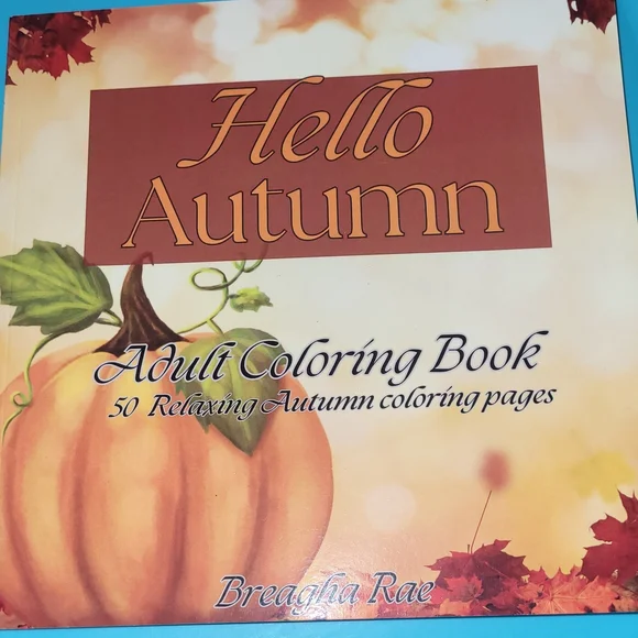 Embrace the season with the 'Hello Autumn' adult coloring book by Breagha Rae. Featuring vibrant orange and brown hues, this book offers 50 relaxing autumn-themed pages to color.