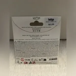 2 taupe “Hello Baby” balloons, and 3 transparent confetti balloons