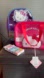 Hello Kitty items, tote is new with tags, damage to card box; however deck of cards are in excellent condition, backpack has small wax patch on side (see photos). Tote and backpack are both plastic material with visible interior, pop art graphic front, and zipper closures. Full deck of cards including 2 Jesters.