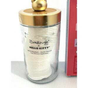 This Hello Kitty x The Crème Shop skincare set includes premium exfoliating cotton pads in a reusable glass jar and a 4-piece Holiday Essence Sheet Mask set. Brand-new, these items are perfect for pampering, daily skincare, or as a gift. The cotton pads are soft, gentle, and eco-friendly, while the sheet masks hydrate and nourish with festive Hello Kitty designs. A must-have for collectors and fans, this set combines fun, function, and style in one package