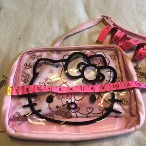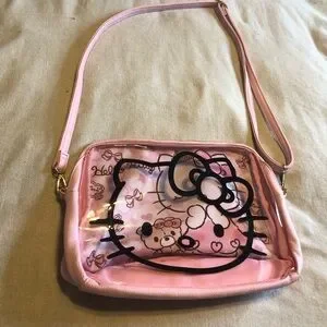 Super cute Hello Kitty X Dearisimo purse. Great preloved condition with minimal signs of wear. See photos for condition. Full zip. Adjustable strap. Clear front with Hello Kitty face. Printed interior fabric that shows through front. Approximate measurements in photos.