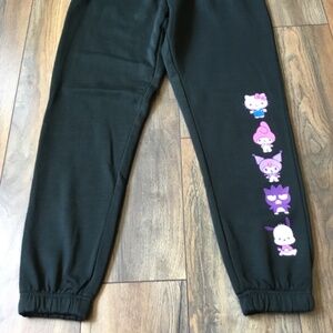 Hello Kitty & Friends black jogger size L. No flaws to mention. Measurements: waist 16” (elastic), inseam 30”.