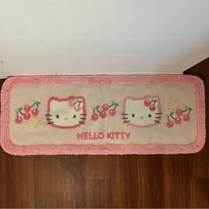 Adorable Hello Kitty bath mat in pink and cream. Features cute cherry and flower designs.