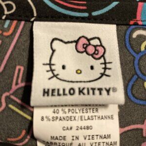 Stay stylish and comfortable at work with this Hello Kitty Ladies Scrub Top in a size Large. Featuring a fun and vibrant black multicolor pattern, this medical uniform is perfect for women in the healthcare industry. Made of durable polyester material, this top is designed for long-lasting wear. Imported from Vietnam, this top is a must-have for any Hello Kitty fan looking to add a touch of personality to their work attire. 2 front pockets. New with tag.