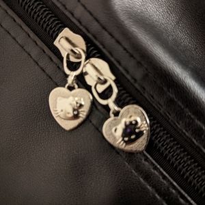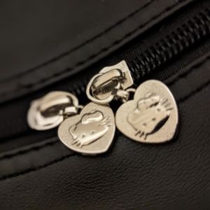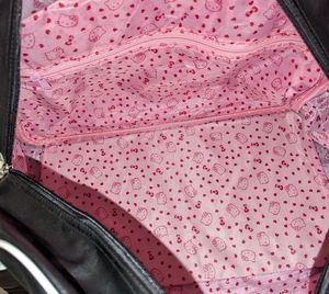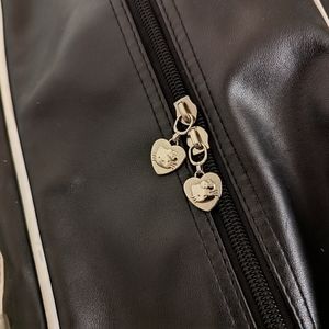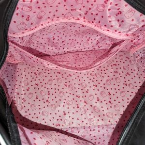 Adorable, large, quality Hello Kitty Duffle Bag. Great luggage piece that will fit plenty for a weekend getaway or as a carry-on for flights. Timeless black and white colour with fun pink Hello Kitty logo lining and generous inside zippered pocket. Zipper pulls are metal Hello Kitty hearts.