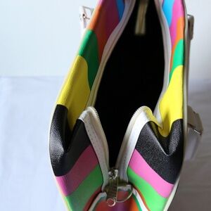 New - Large Hello Kitty vinyl tote/travel bag with zipper closure. One large zippered compartment - great for trips to the beach or pool! Multi colored stripes with large Hello Kitty face. Approx. measurements: 15" wide x 14.5" tall. Brand new, never used. Smoke-free, pet friendly home!